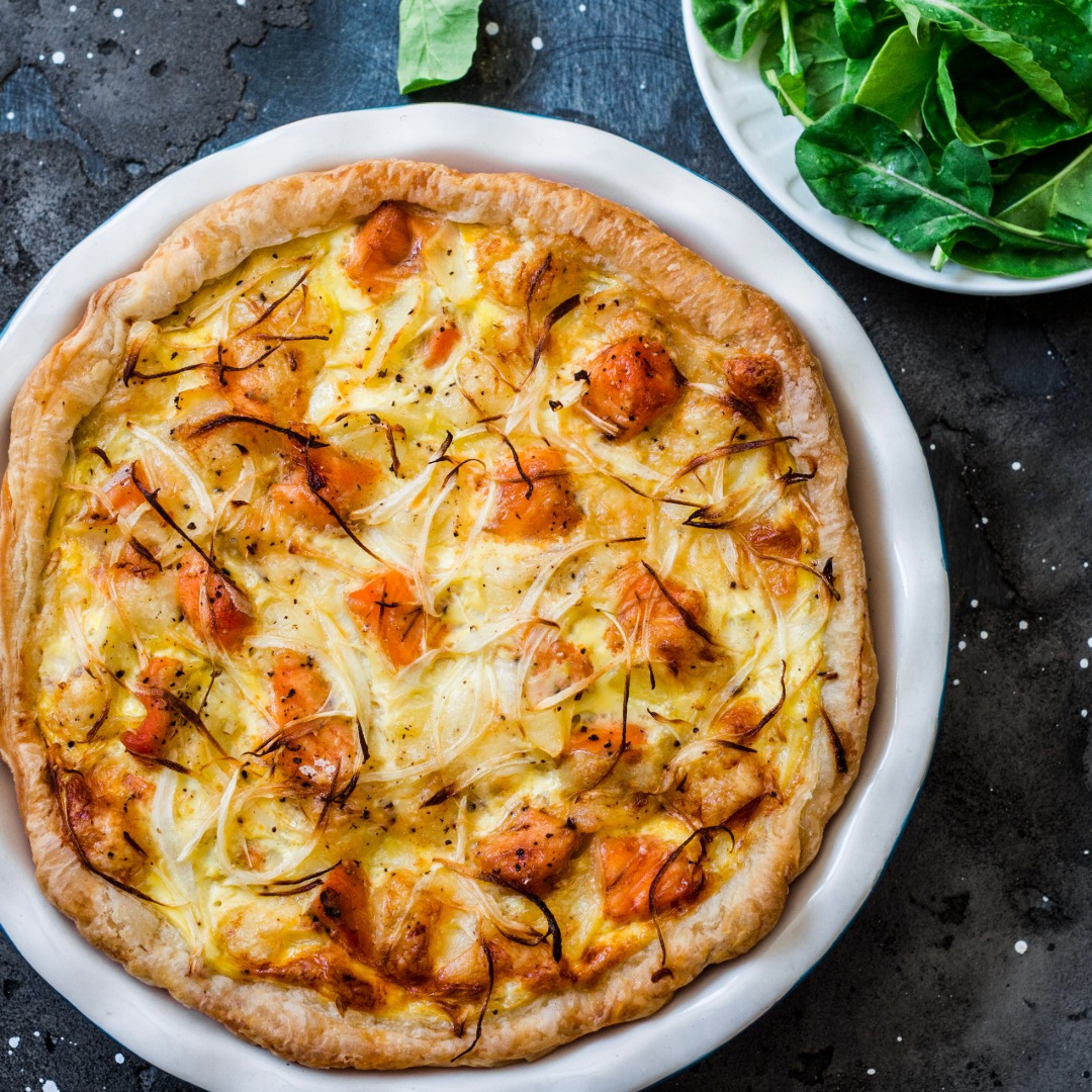 Flammekueche aux dés de poissons fumés